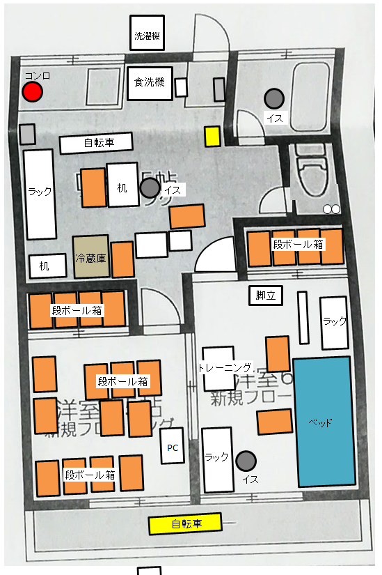部屋の中、今の配置はこんなもんです。