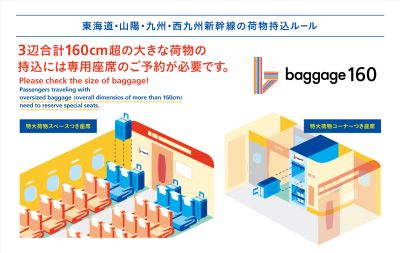 「特大荷物」に該当する大きさのお荷物を持ってご旅行される場合には、「特大荷物スペースつき座席」または「特大荷物コーナーつき座席」 の事前予約が必要です。