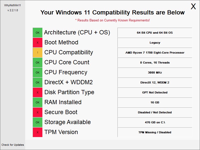 [389] WhyNotWin11 - Windows 11 の動作要件ごとに対応状況を表示 : くるみさん : 2021/06/27(Sun) 09:36 *
