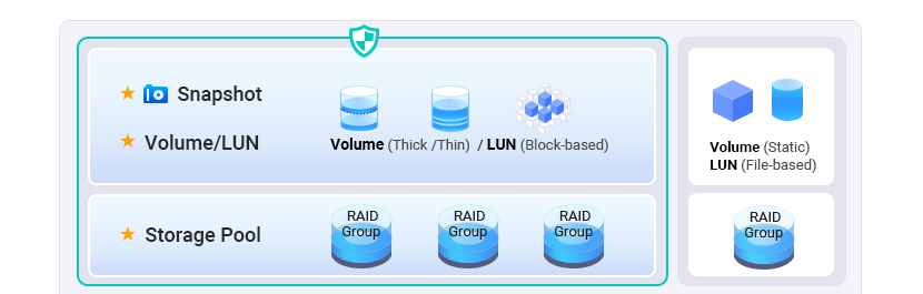 ※スナップショットの対象は、シンボリューム、ブロックベースのLUNが対象です。