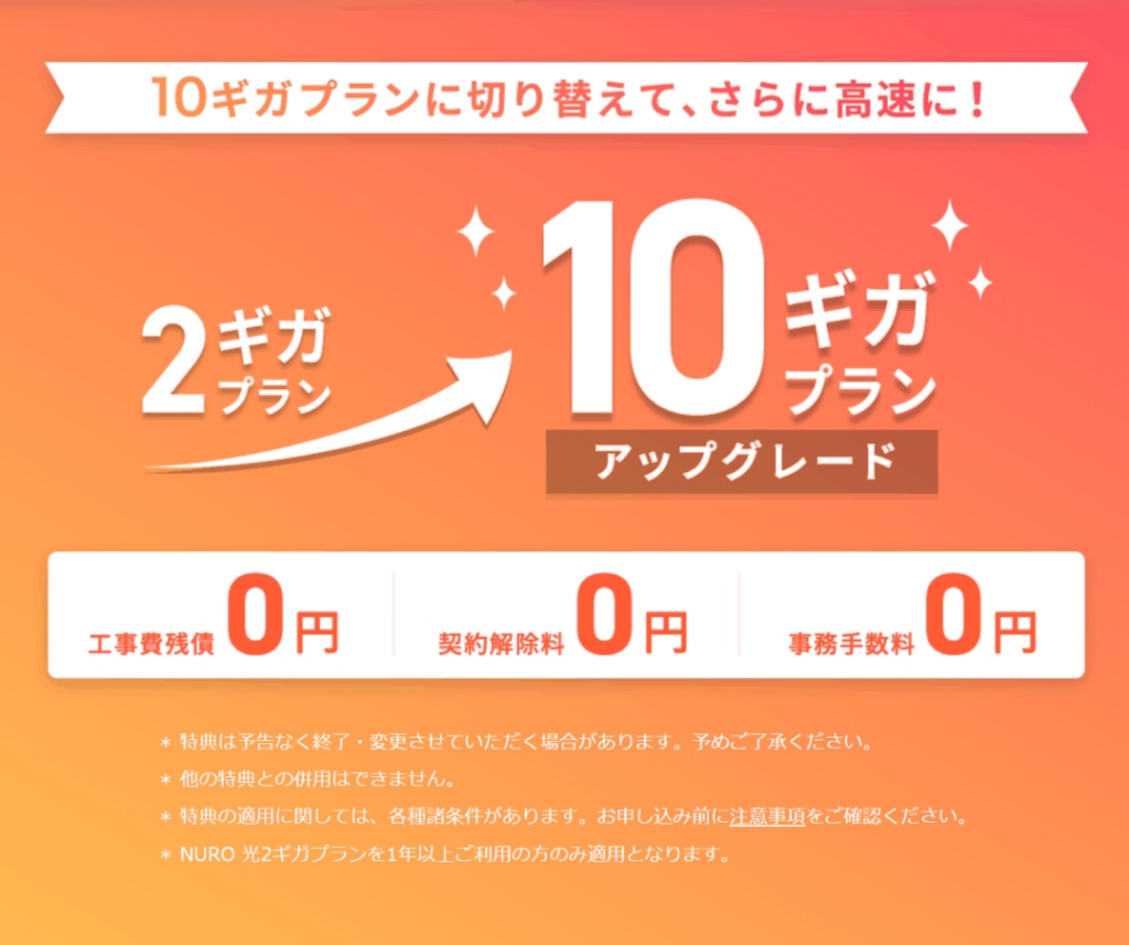 NURO 光 2ギガをご利用中の方は切り替え費用なし!