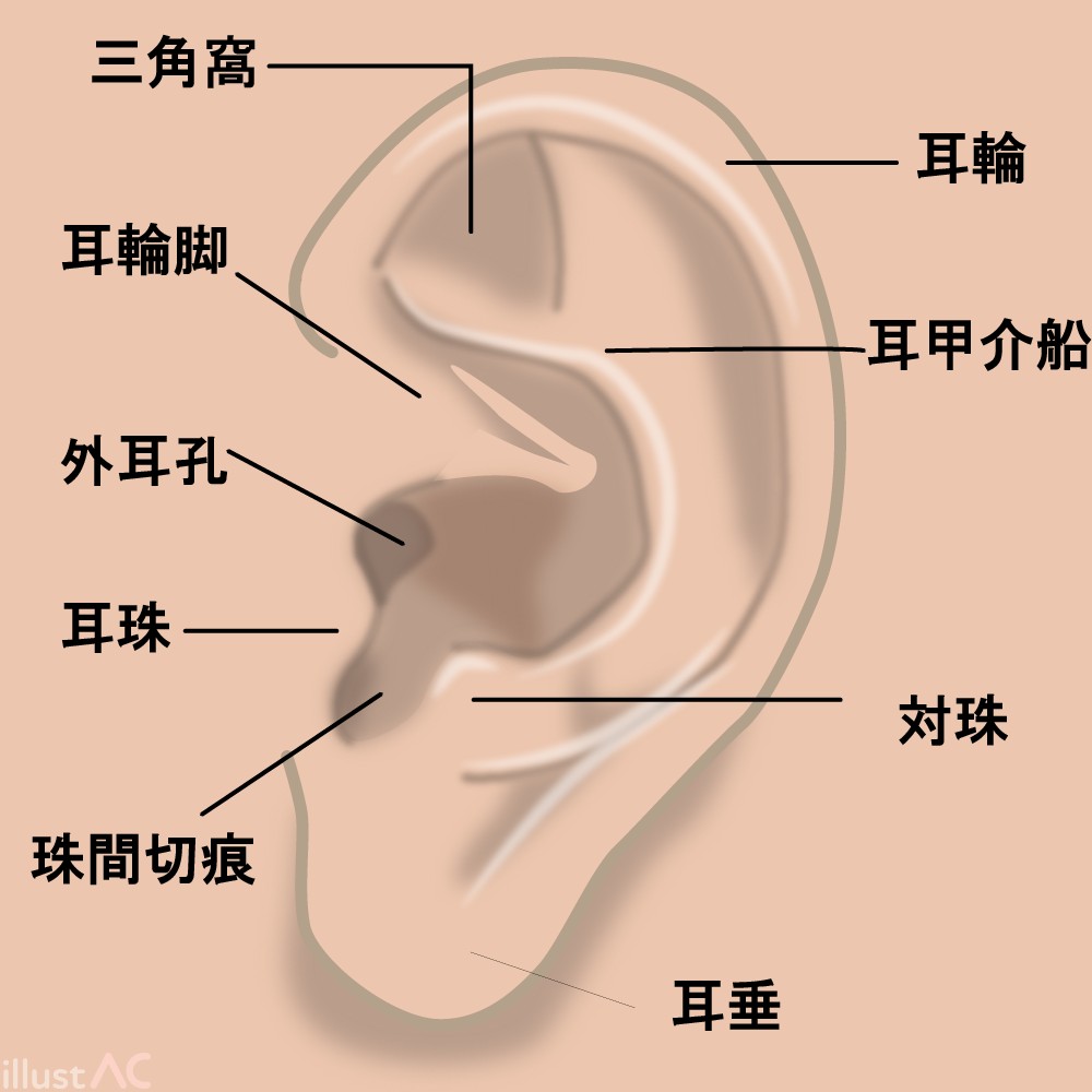 人間の耳介は、この凹凸形状はきわめて著しい個人差があります。(耳甲介腔に10mm程度の差がある)