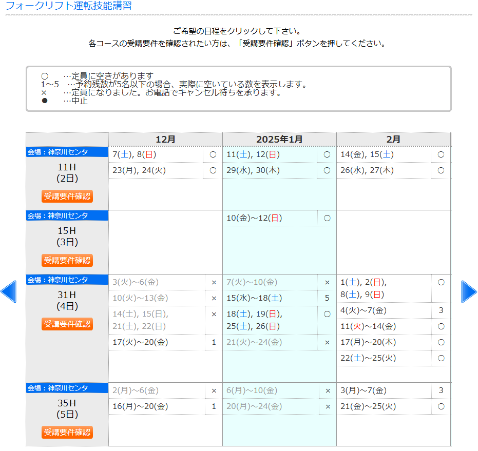 ●玉掛け技能講習 https://www.komatsu-kyoshujo.co.jp/KkjReservation/Subjects/CourseListSkillHang.aspx