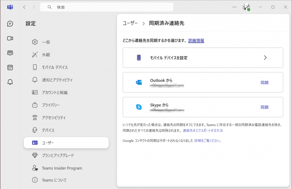 https://support.microsoft.com/ja-jp/office/microsoft-teams-%E3%81%A7%E9%80%A3%E7%B5%A1%E5%85%88%E3%82%92%E5%90%8C%E6%9C%9F%E3%81%99%E3%82%8B-%E7%84%A1%E6%96%99-313a0ecd-6d3d-4645-9db2-92762be9618a